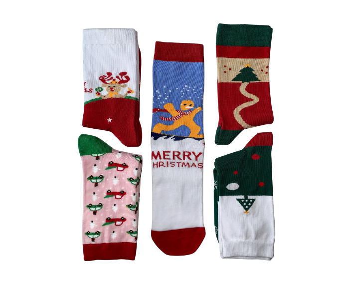 Step into the holiday spirit with the Kheyoot™ Christmas Print Socks Set. This 5-piece collection features adult-sized socks, each with a unique Christmas-themed print. Perfect for lounging at home, gifting, or adding festive flair to your winter wardrobe, these socks combine comfort, quality, and holiday charm for a joyful seasonal experience.